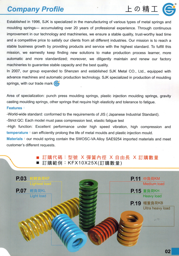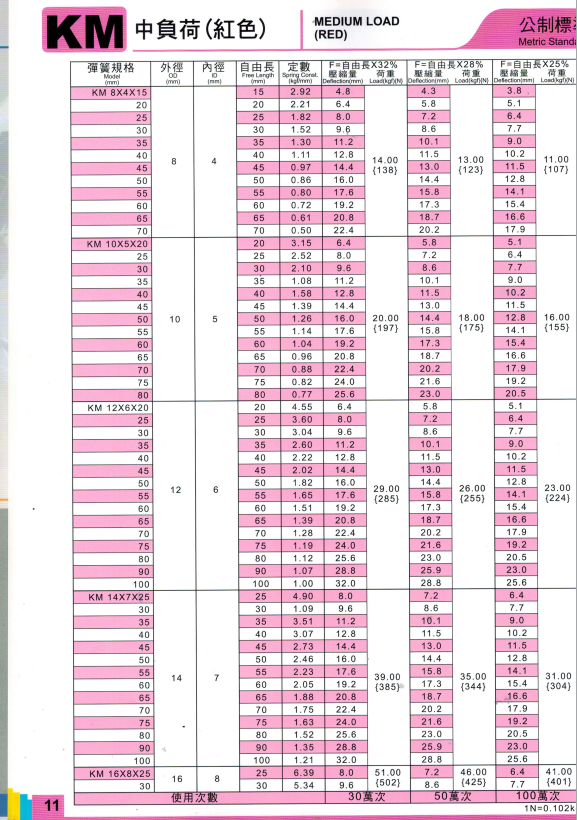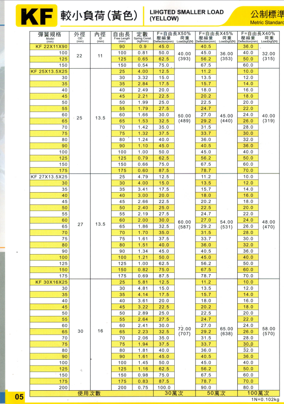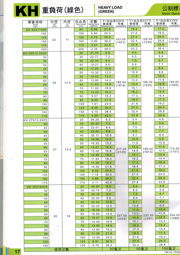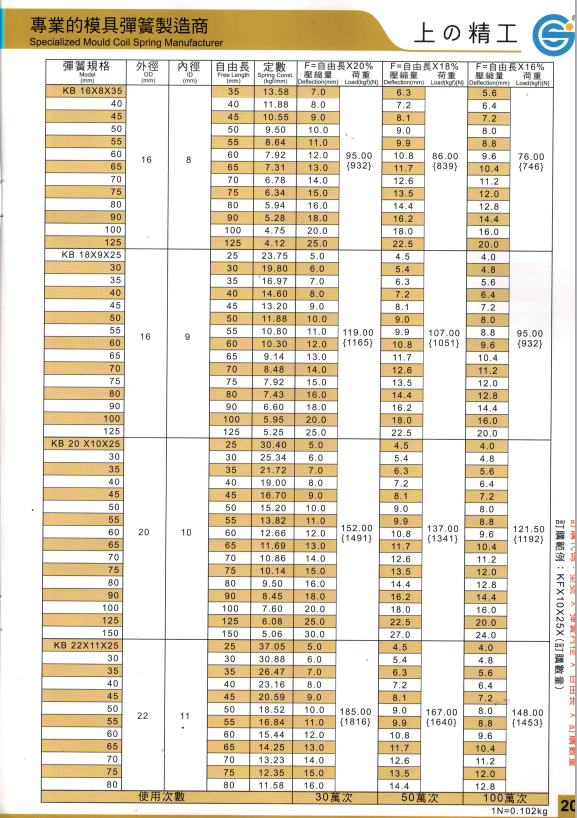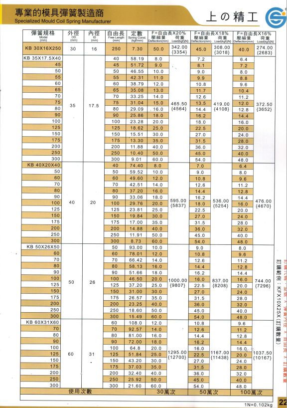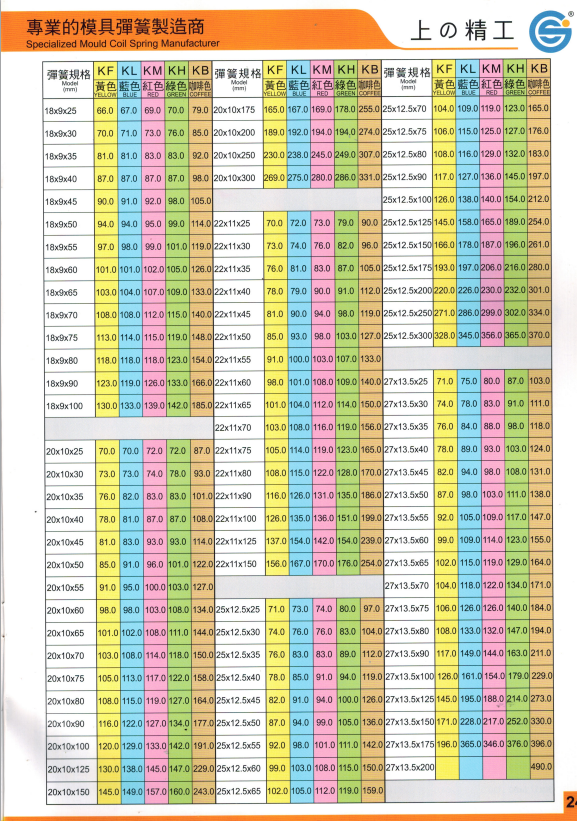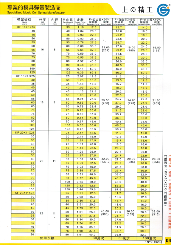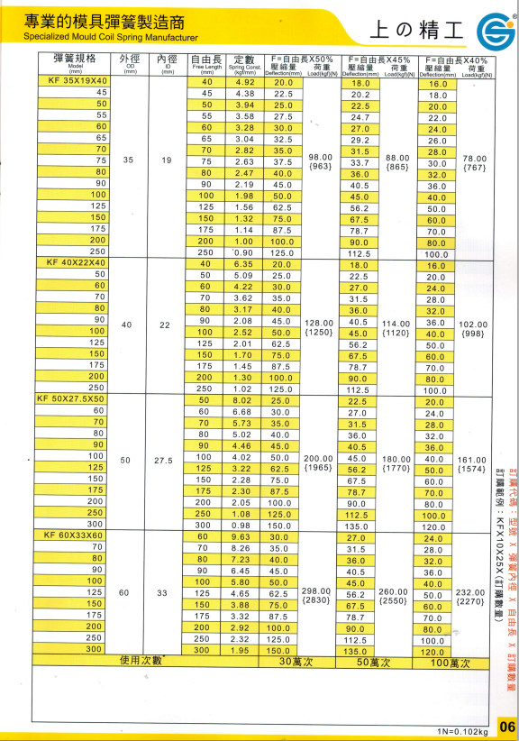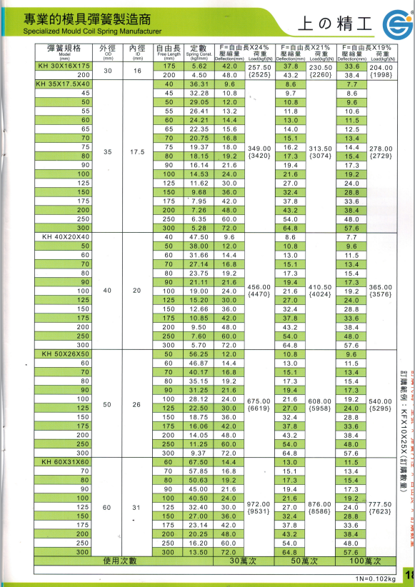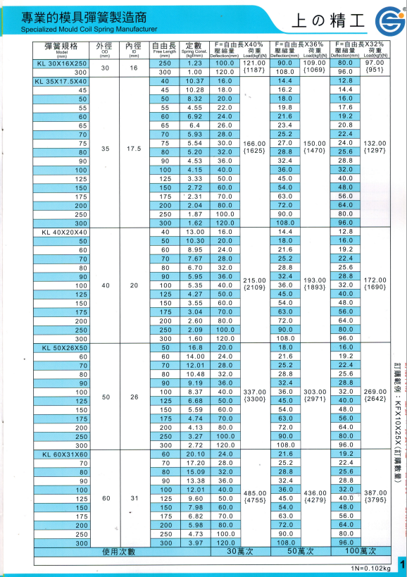 上精工模具彈簧規(guī)格書(產(chǎn)品大全)